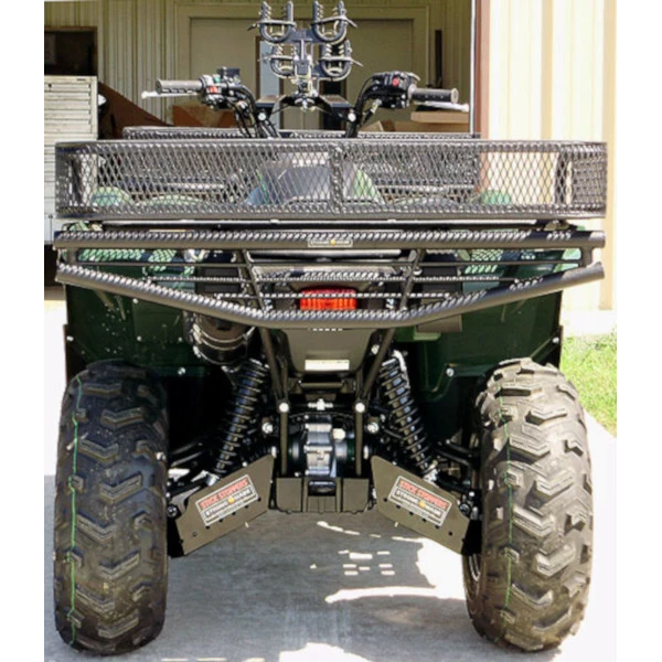The Brush Buster Bumper is made from 1.5 inch round steel pipe.Powder Coated Wrinkle Black.No cutting or drilling needed. Get your socket wrench and pliers and you are ready to install the Brush Buster Bumper.Specifically designed for each model of ATV for a custom look appearance.Mounts to original racks.MOUNTS THE FOLLOWING:YAMAHA GRIZZLY 550 4X4 2009-2013YAMAHA GRIZZLY 700 4X4 2007-2013