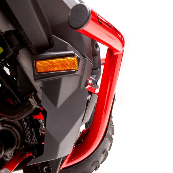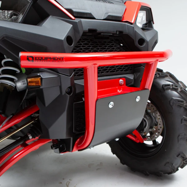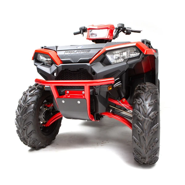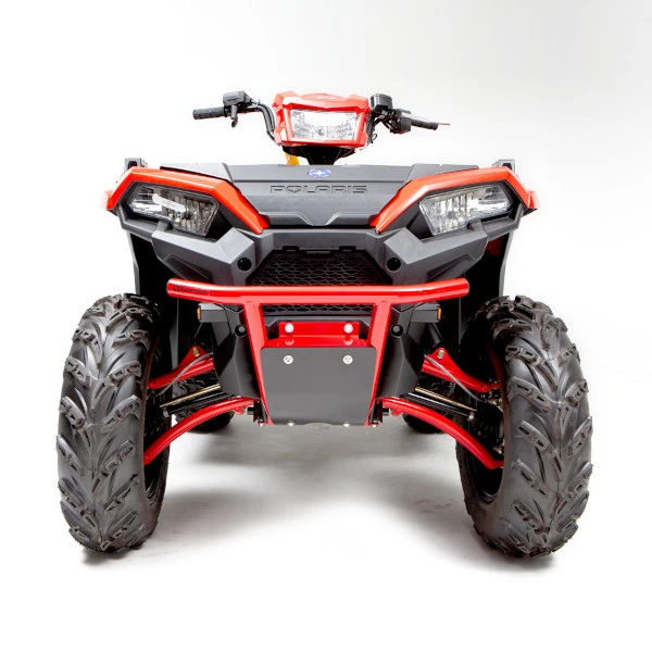 The HMF IQ Defender Front Bumper for the Polaris Sportsman XP 1000 is built from .095″ steel tubing and offers an increased form of protection to the front end of the machine. Available in black and red, the Defender Front Bumper includes a black 1/8″ aluminum skid plate with or without a mount for an ATV 4-7/8″ fairlead. With a fairlead and winch (not included), you can load up to a 2500lb Winch for increased functionality and an overall more capable machine.